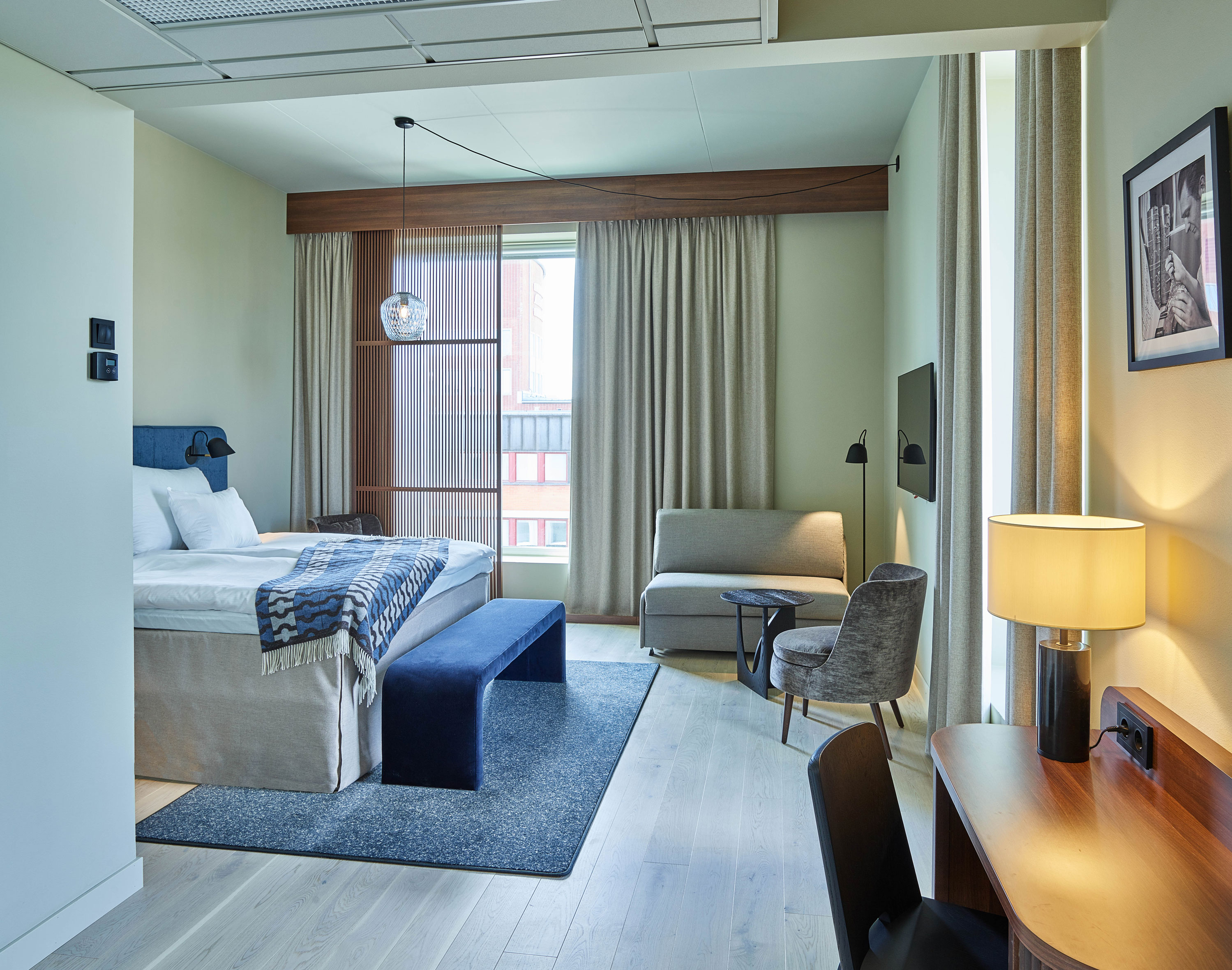 When Tapetfabriken opened in 2021 in the former wallpaper factory complex in Sickla/Nacka, the hotel set a new standard for industrially genuine hotel décor in the Stockholm area. The historic building has been given new life – and the interior was meant to reflect the factory heritage, brickwork, industrial patina, while simultaneously creating a warm, modern hotel experience. We at SIFAB were responsible for all fixed and loose furnishings – a task where form, function, and craftsmanship were united.