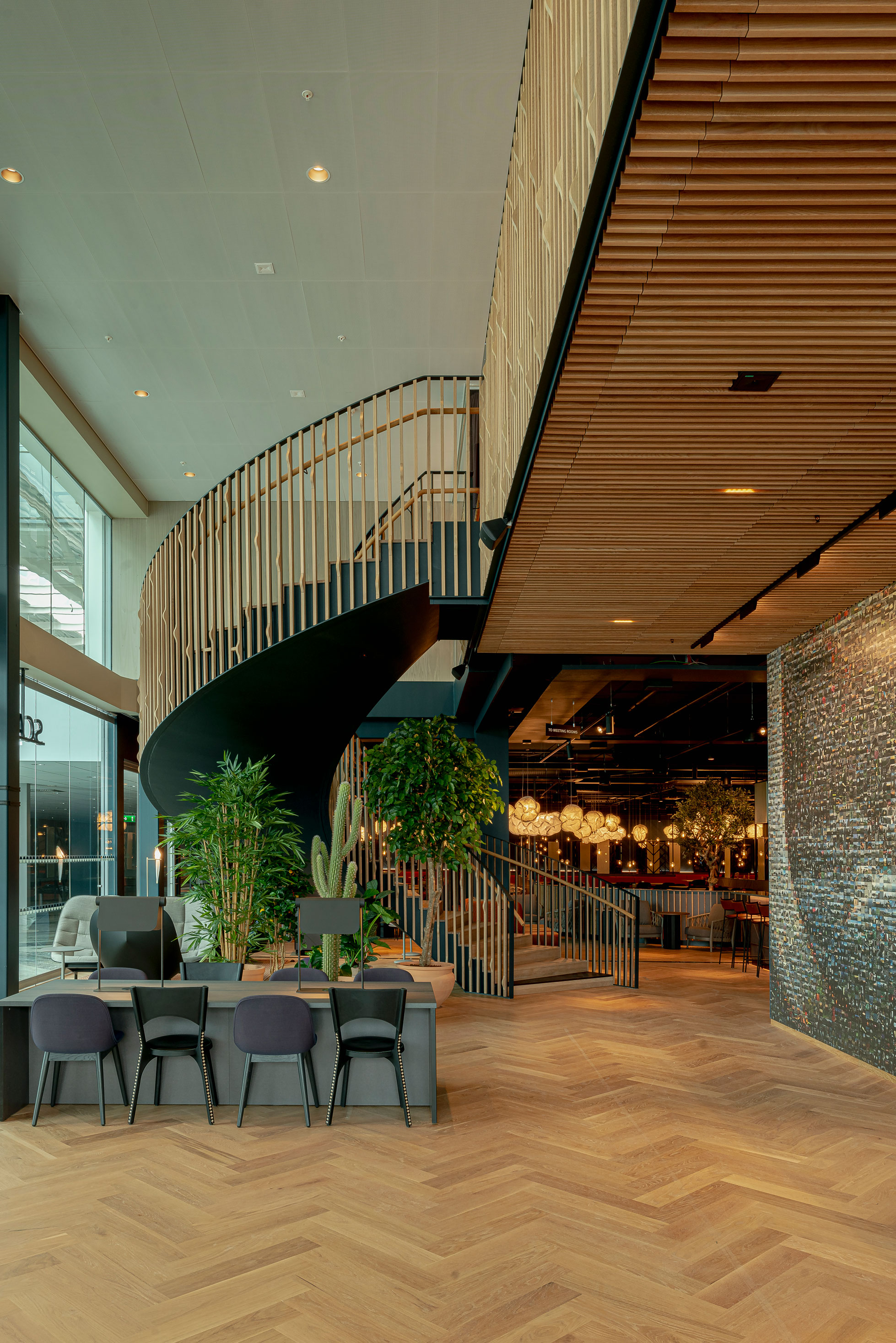 Hotellet är beläget mitt i flygplatsens terminalområde, med effektiva förbindelser och en tydlig roll som knutpunkt för möten och resande. Projektets bakgrund präglades av en ambition att skapa en interiör som både välkomnar globalt resande och samtidigt lyfter nordisk design och naturliga material. Hållbarhet och cirkularitet var tydliga ledord — interiören skulle bestå av robusta material som kan återbrukas vid framtida renovering.