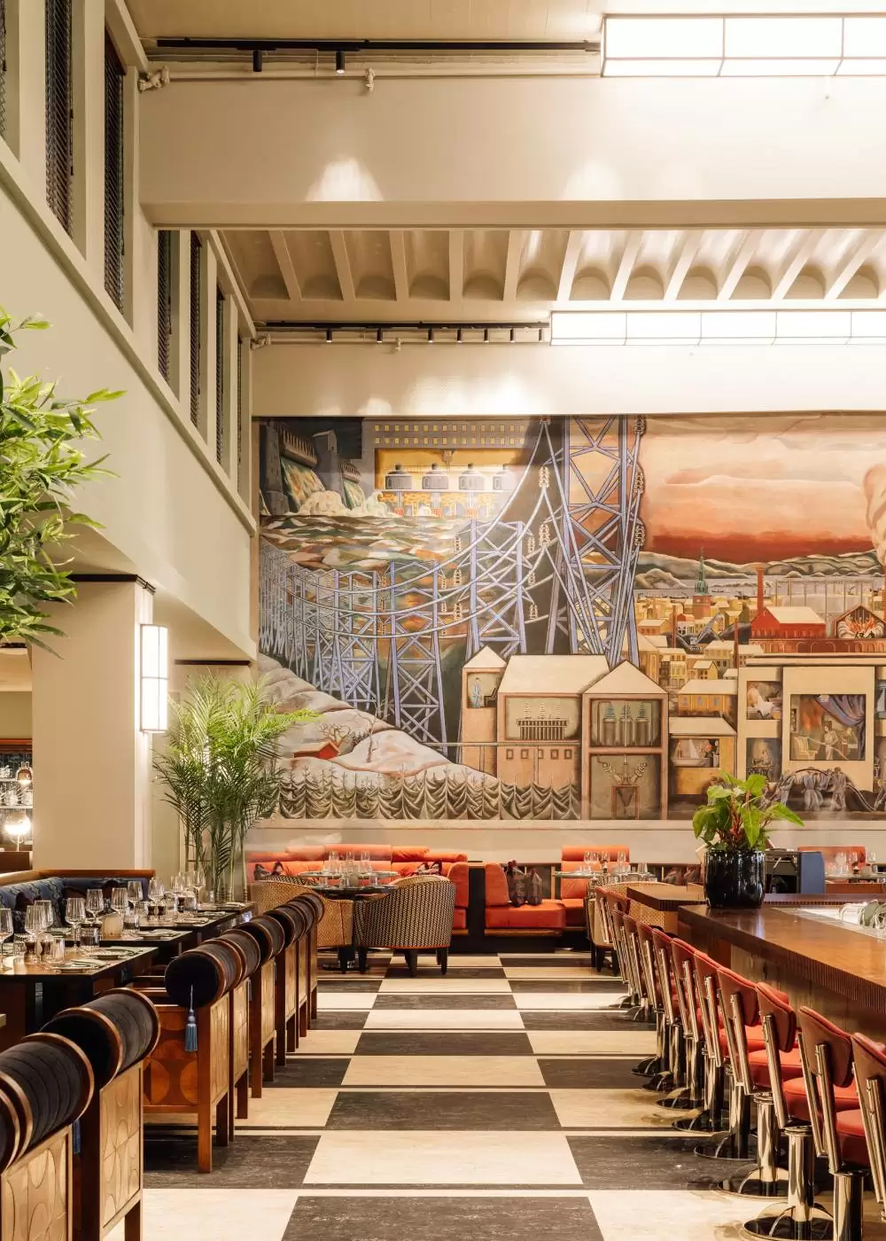 I nära samarbete med designteamet på den amerikanska byrån GRECODECO definierades materialval, måttanpassningar och logistiska lösningar utifrån både byggnadens bevarandestatus och hotell-krav. Vi levererade all skräddarsydd fast inredning i de publika miljöerna – inklusive reception, lounger, restauranger, barer och möteslokaler – samt med lös inredning och möbler som harmoniserar med projektets Art Deco-estetik och hotellets sociala ambitioner. Tillsammans möjliggjorde detta att inredningen både reflekterar byggnadens arv och möter moderna krav på funktion, hållbarhet och design.